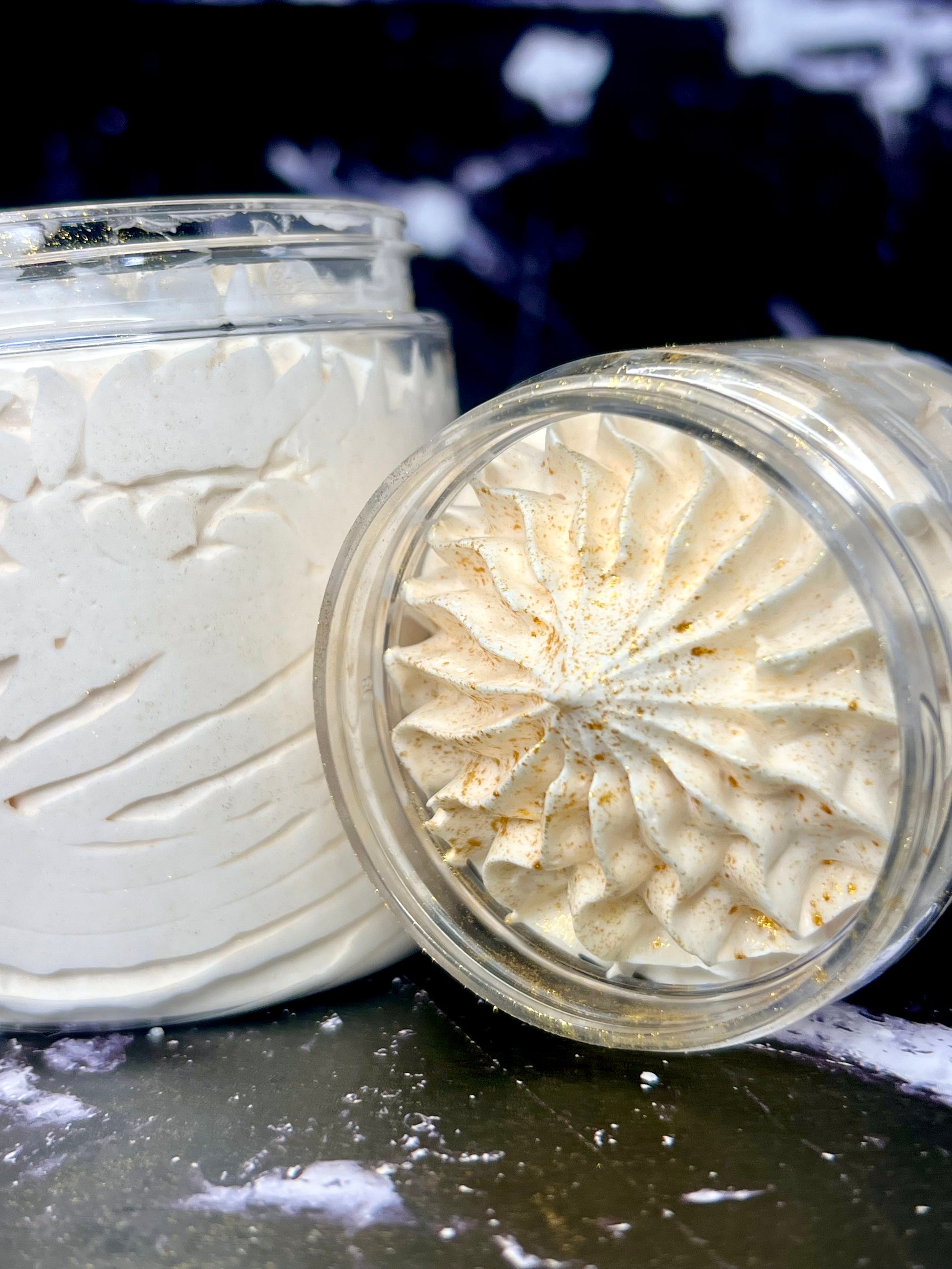 Ingredients: Coconut oil, shea butter, mango butter, vegetable glycerin arrowroot starch, fragrance, mica & LOTS OF LOVE ♡
